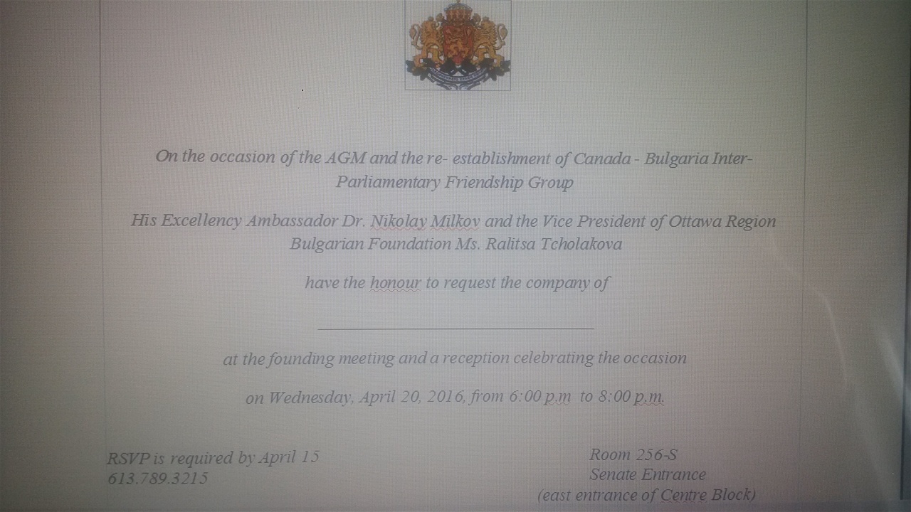 Establishment of Canada-Bulgaria Inter Parliamentary Friendship Group in the Canadian Parliament