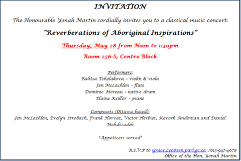 The Honourable Yonah Martin cordially invites you to a classical music concert